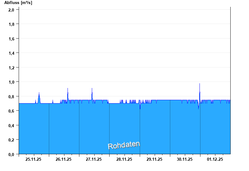 Abfluss durch starke Verkrautung behindert; Abflusswerte unsicher