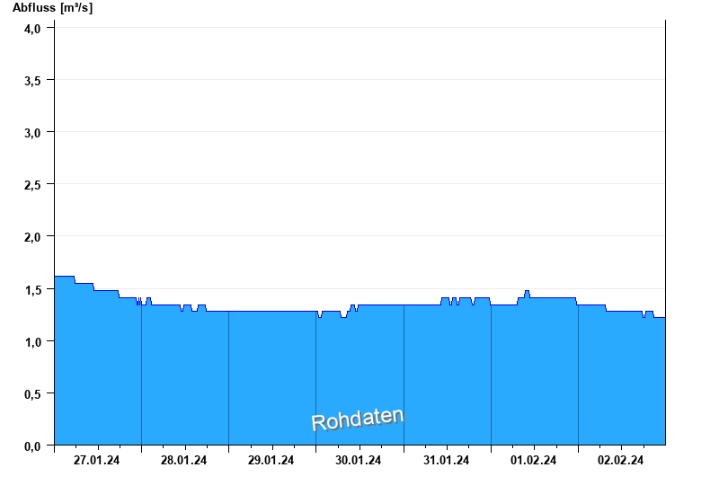 Abfluss durch starke Verkrautung behindert; Abflusswerte unsicher
