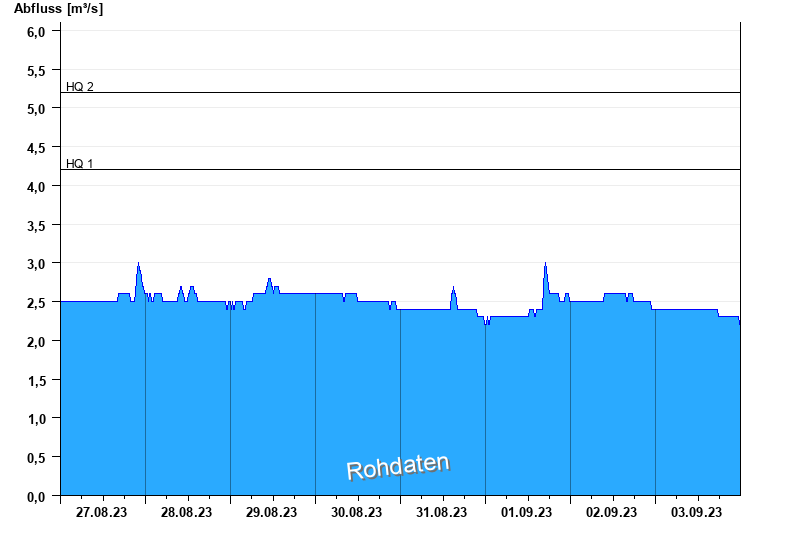 Abfluss durch starke Verkrautung behindert; Abflusswerte unsicher