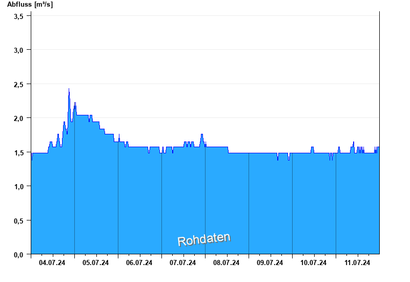 Abfluss durch starke Verkrautung behindert; Abflusswerte unsicher