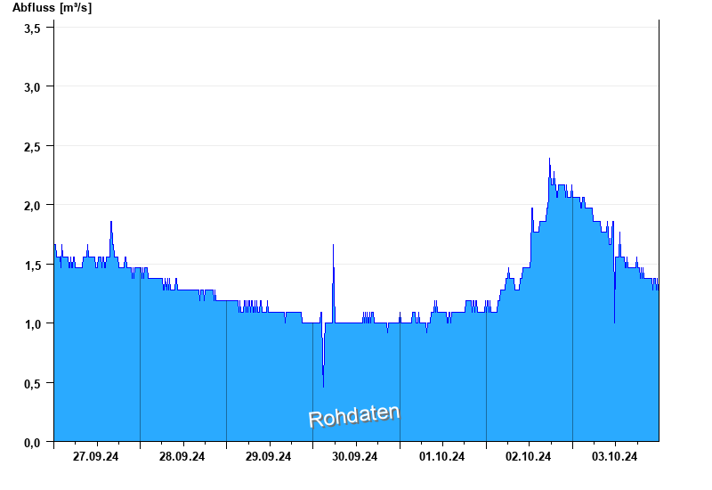 Abfluss durch starke Verkrautung behindert; Abflusswerte unsicher