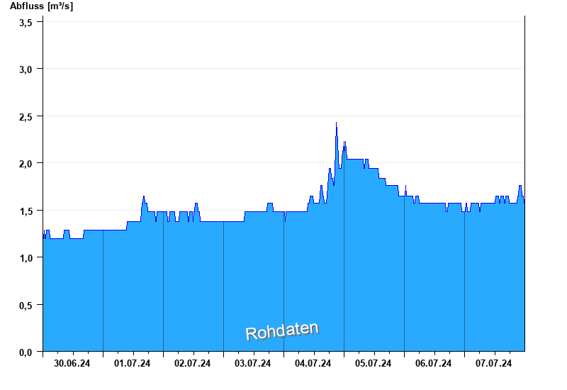 Abfluss durch starke Verkrautung behindert; Abflusswerte unsicher