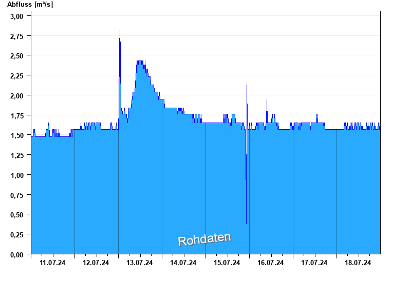 Abfluss durch starke Verkrautung behindert; Abflusswerte unsicher