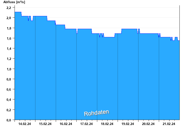 Abfluss durch starke Verkrautung behindert; Abflusswerte unsicher