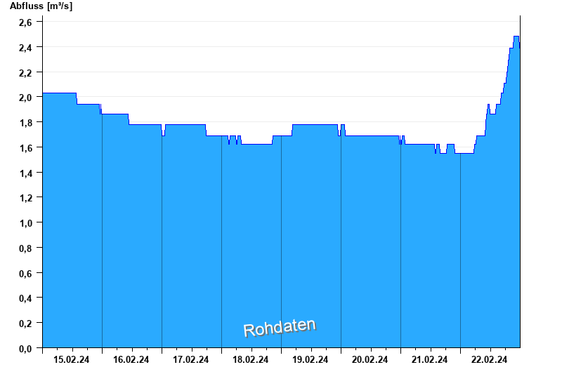 Abfluss durch starke Verkrautung behindert; Abflusswerte unsicher