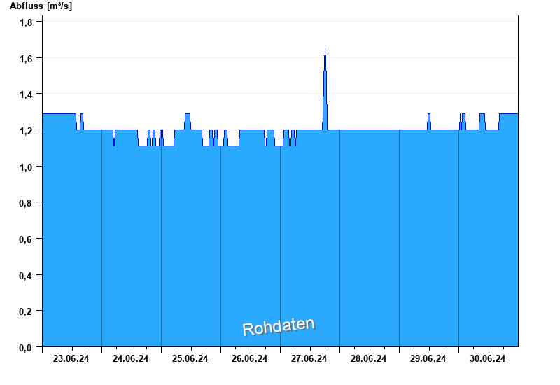 Abfluss durch starke Verkrautung behindert; Abflusswerte unsicher