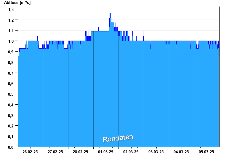 Abfluss durch starke Verkrautung behindert; Abflusswerte unsicher