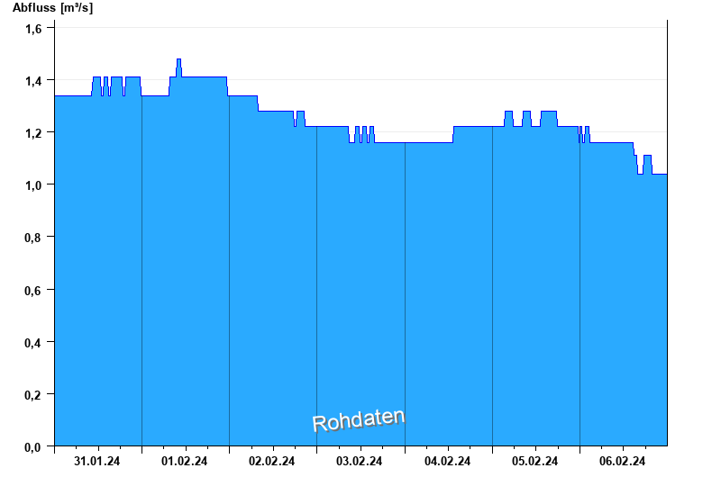 Abfluss durch starke Verkrautung behindert; Abflusswerte unsicher