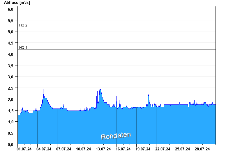 Abfluss durch starke Verkrautung behindert; Abflusswerte unsicher