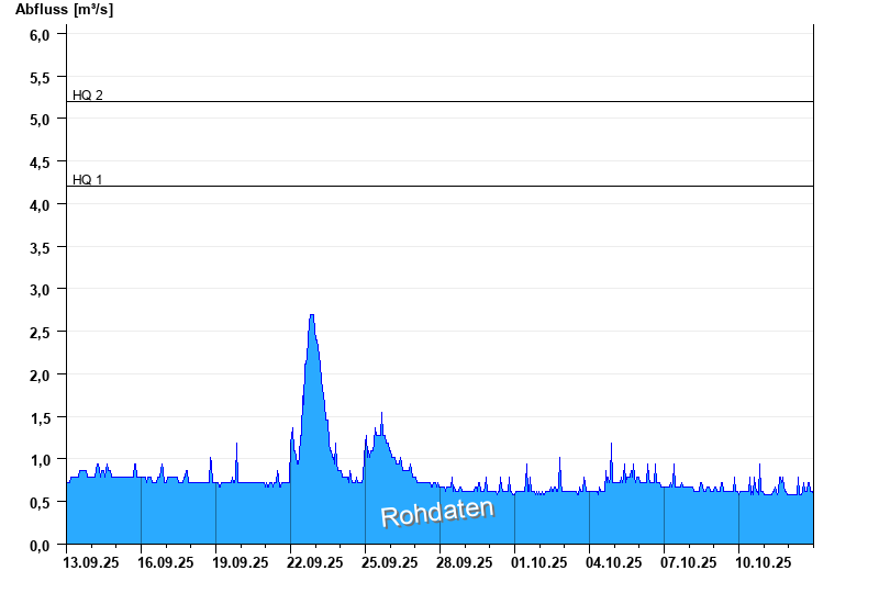Abfluss durch starke Verkrautung behindert; Abflusswerte unsicher