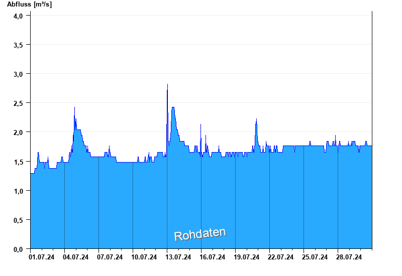 Abfluss durch starke Verkrautung behindert; Abflusswerte unsicher