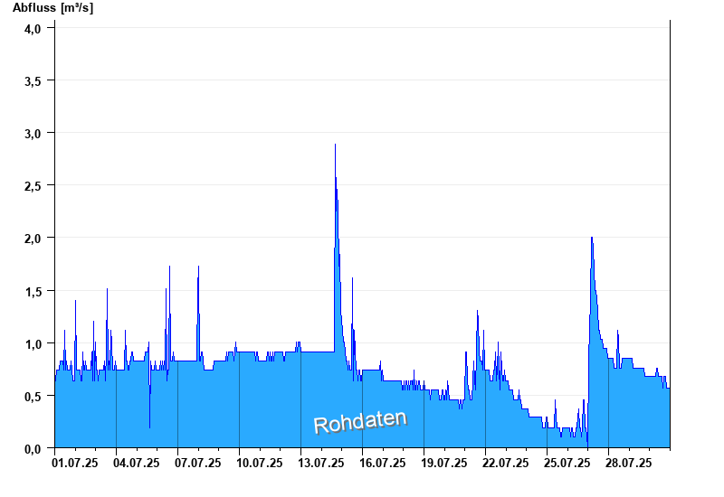 Abfluss durch starke Verkrautung behindert; Abflusswerte unsicher