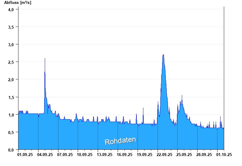 Abfluss durch starke Verkrautung behindert; Abflusswerte unsicher