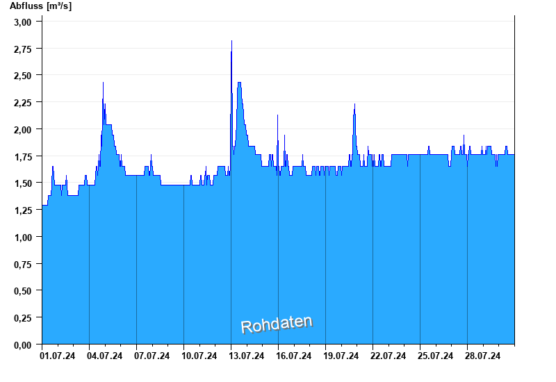 Abfluss durch starke Verkrautung behindert; Abflusswerte unsicher