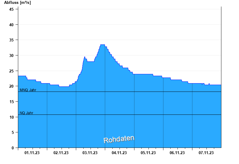 - Mittlerer Niedrigwasserabfluss MNQ 18,2 m³/s