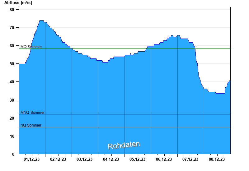 - Mittlerer Niedrigwasserabfluss MNQ 22,1 m³/s