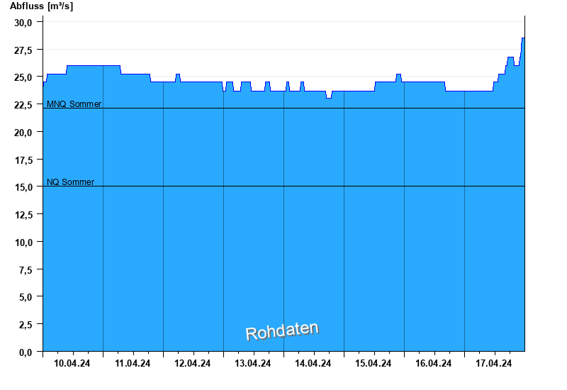 - Mittlerer Niedrigwasserabfluss MNQ 22,1 m³/s