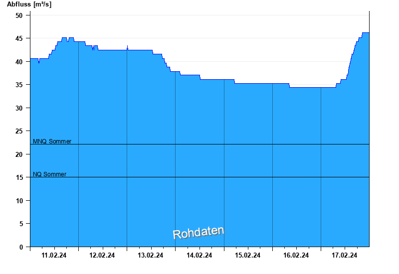 - Mittlerer Niedrigwasserabfluss MNQ 22,1 m³/s