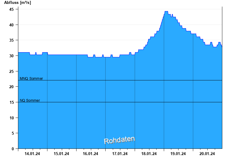 - Mittlerer Niedrigwasserabfluss MNQ 22,1 m³/s