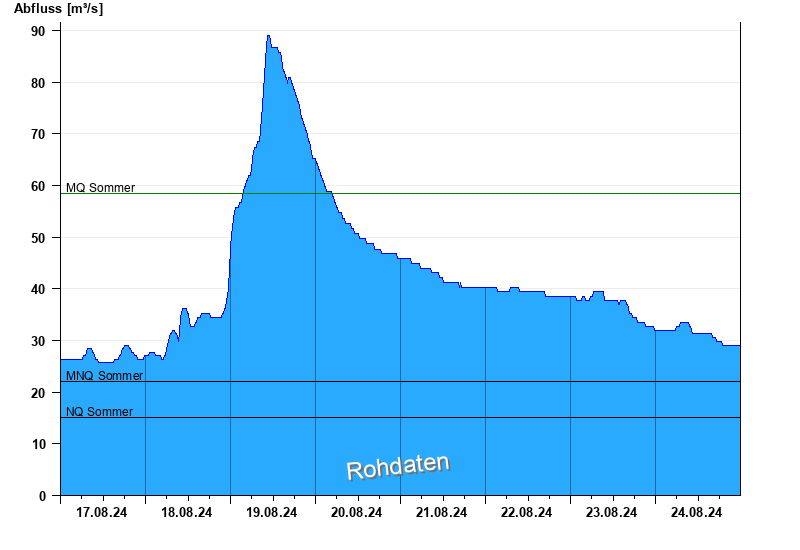 - Mittlerer Niedrigwasserabfluss MNQ 22,1 m³/s