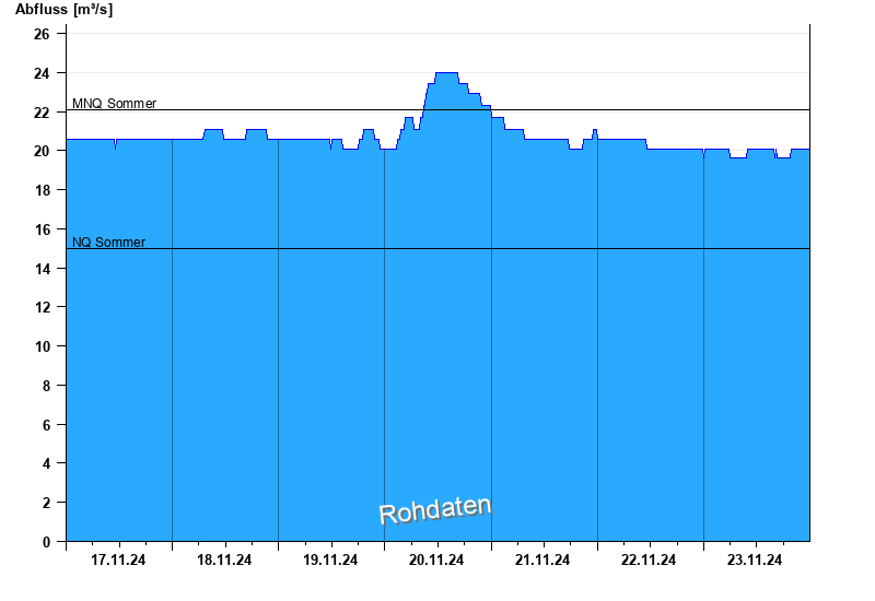 - Mittlerer Niedrigwasserabfluss MNQ 22,1 m³/s