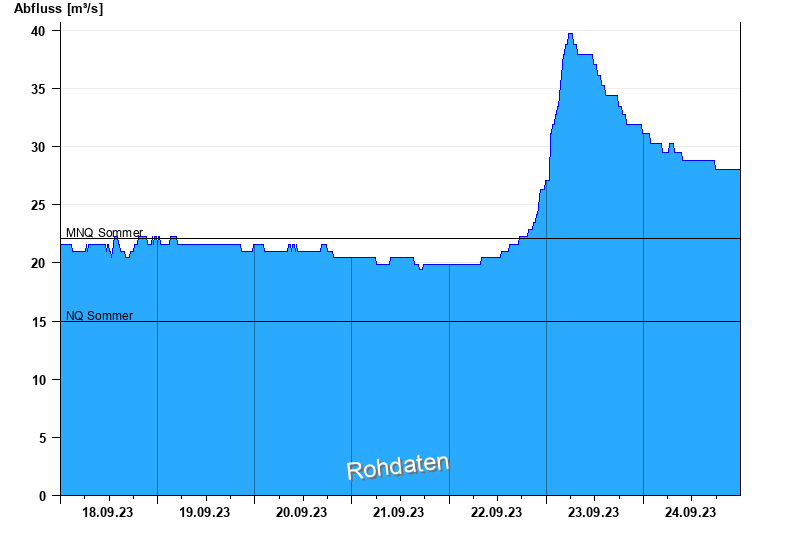 - Mittlerer Niedrigwasserabfluss MNQ 22,1 m³/s