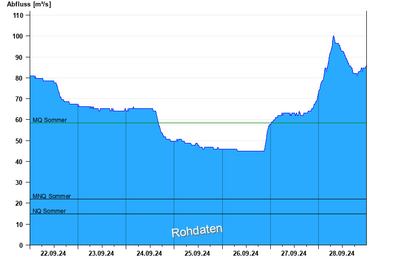 - Mittlerer Niedrigwasserabfluss MNQ 22,1 m³/s