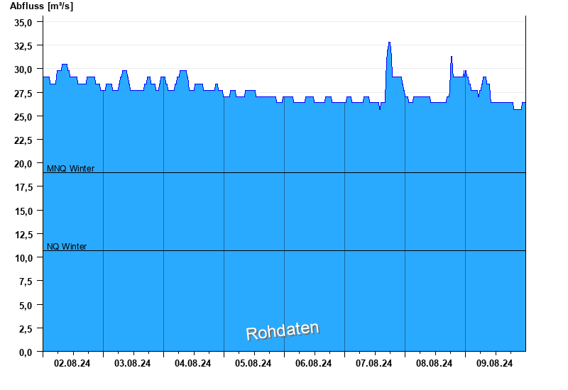 - Mittlerer Niedrigwasserabfluss MNQ 19 m³/s