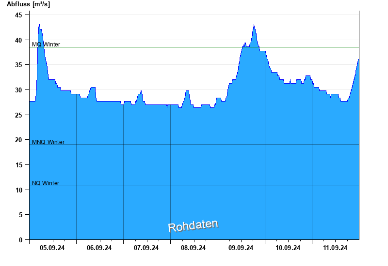 - Mittlerer Niedrigwasserabfluss MNQ 19 m³/s
