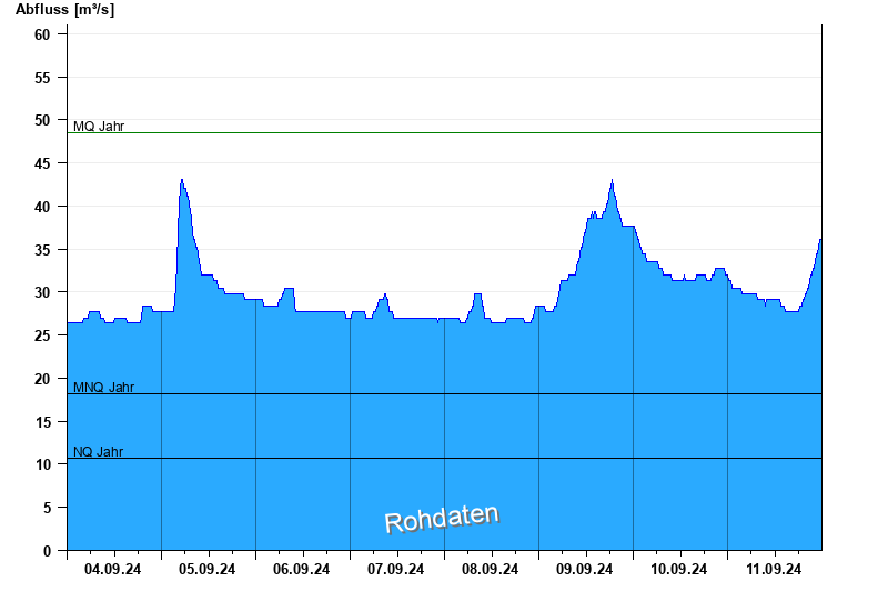 - Mittlerer Niedrigwasserabfluss MNQ 18,2 m³/s