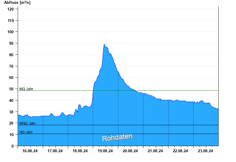 - Mittlerer Niedrigwasserabfluss MNQ 18,2 m³/s