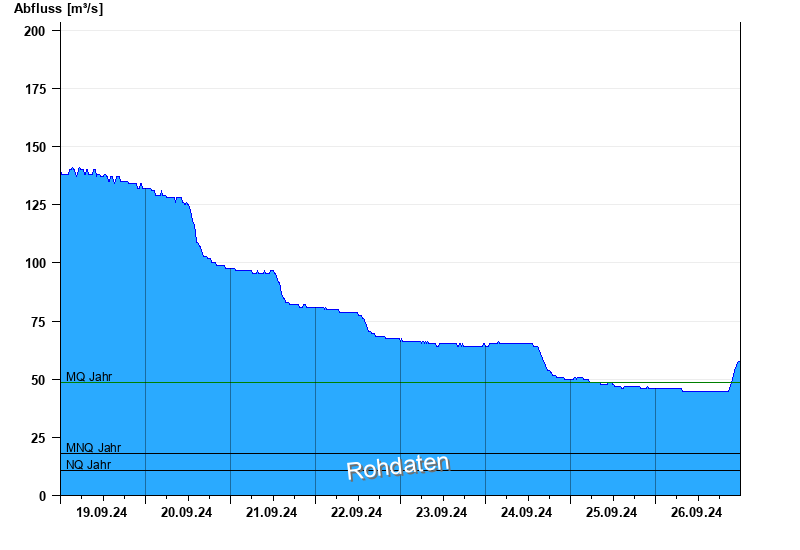 - Mittlerer Niedrigwasserabfluss MNQ 18,2 m³/s