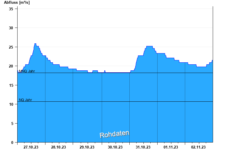 - Mittlerer Niedrigwasserabfluss MNQ 18,2 m³/s