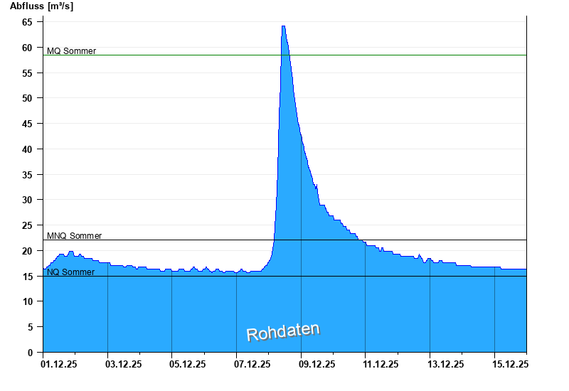 - Mittlerer Niedrigwasserabfluss MNQ 22,1 m³/s