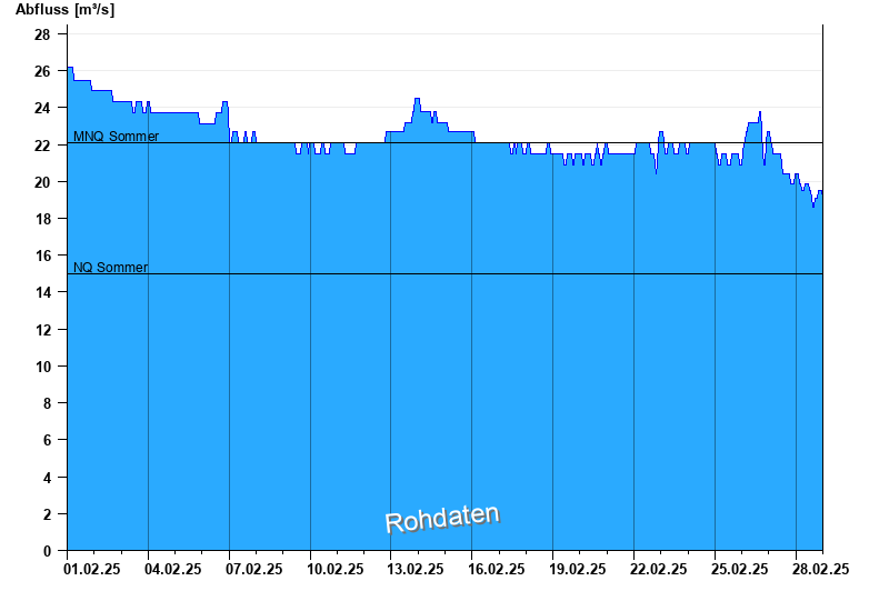 - Mittlerer Niedrigwasserabfluss MNQ 22,1 m³/s