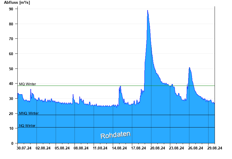- Mittlerer Niedrigwasserabfluss MNQ 19 m³/s