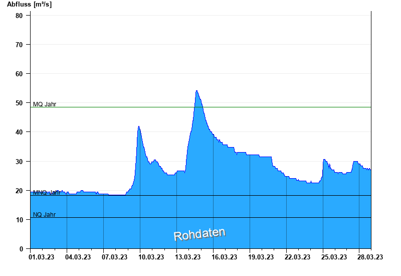 - Mittlerer Niedrigwasserabfluss MNQ 18,2 m³/s