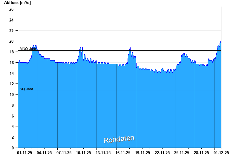 - Mittlerer Niedrigwasserabfluss MNQ 18,2 m³/s