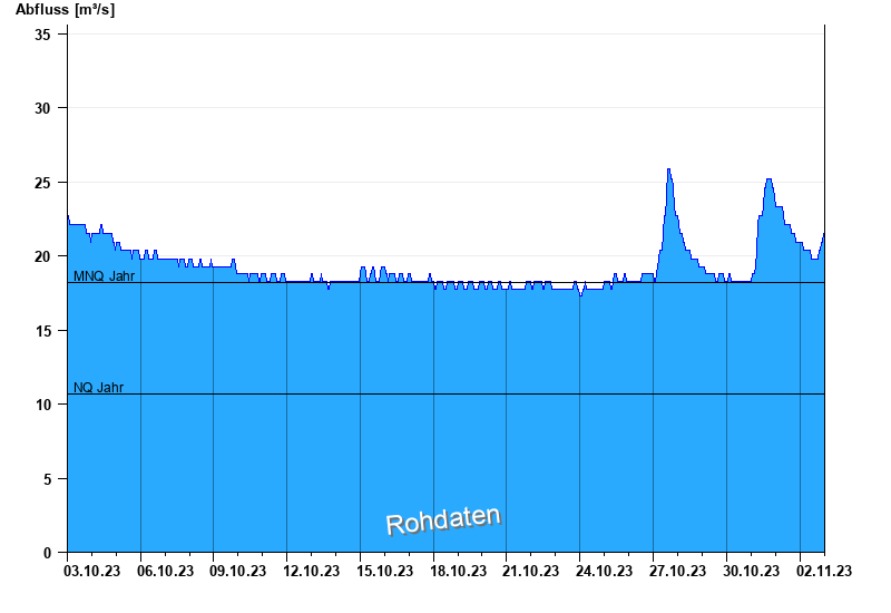 - Mittlerer Niedrigwasserabfluss MNQ 18,2 m³/s