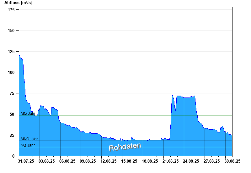 - Mittlerer Niedrigwasserabfluss MNQ 18,2 m³/s