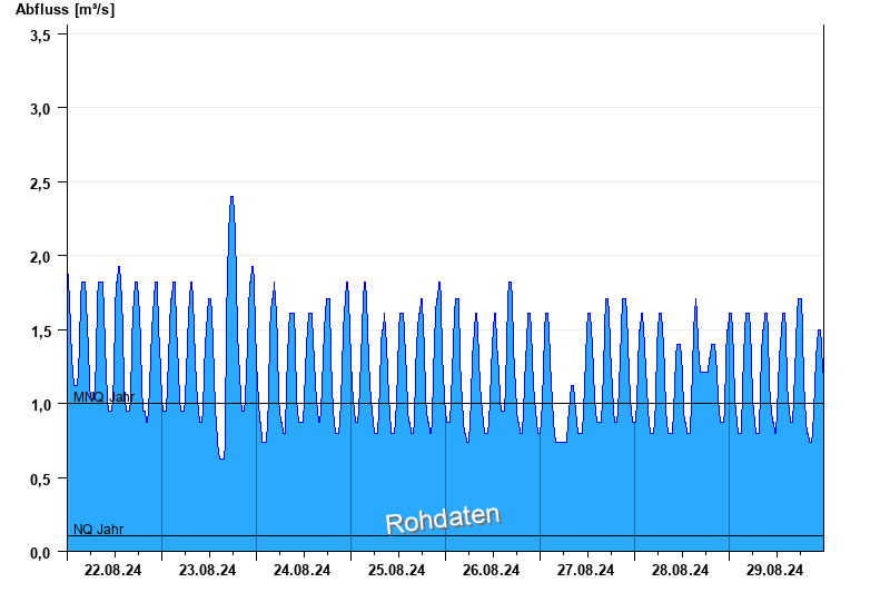 - Mittlerer Niedrigwasserabfluss MNQ 1 m³/s