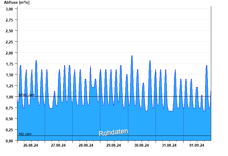 - Mittlerer Niedrigwasserabfluss MNQ 1 m³/s