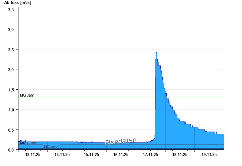 - Mittlerer Niedrigwasserabfluss MNQ 0,118 m³/s