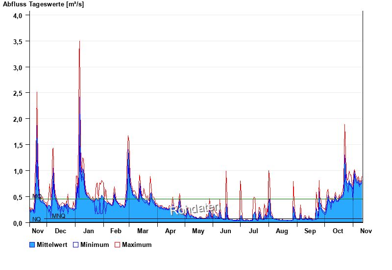 - Mittlerer Niedrigwasserabfluss MNQ 0,075 m³/s
