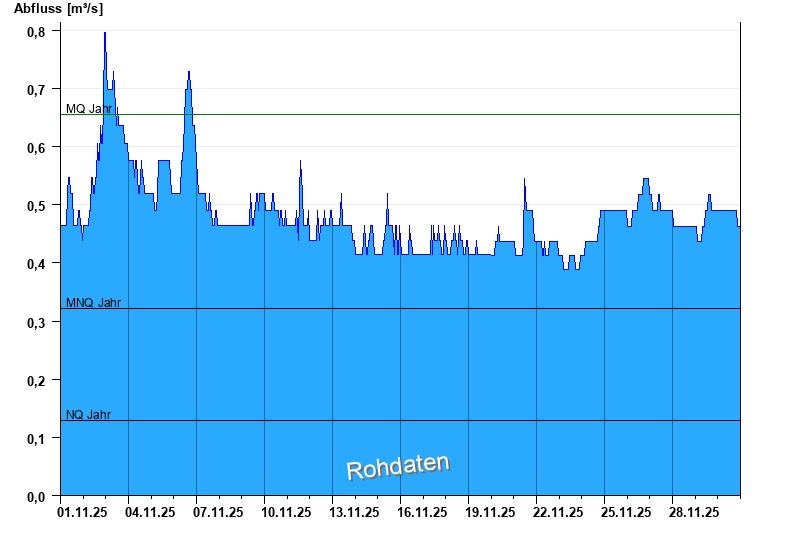 - Niedrigwasserabfluss NQ 0,129 m³/s