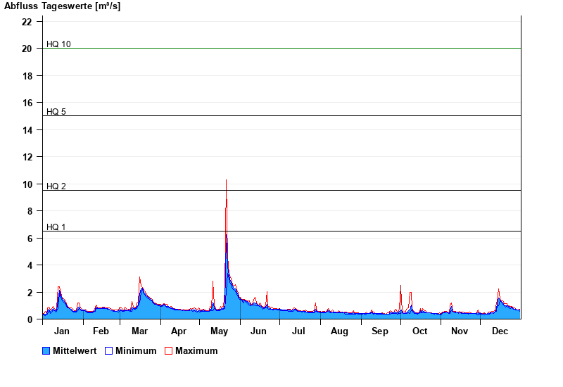 | Date | Mean value [m³/s] | Maximum [m³/s] | Minimum [m³/s] |