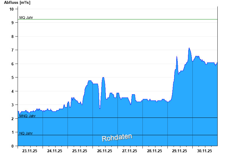 - Mittlerer Niedrigwasserabfluss MNQ 2,06 m³/s