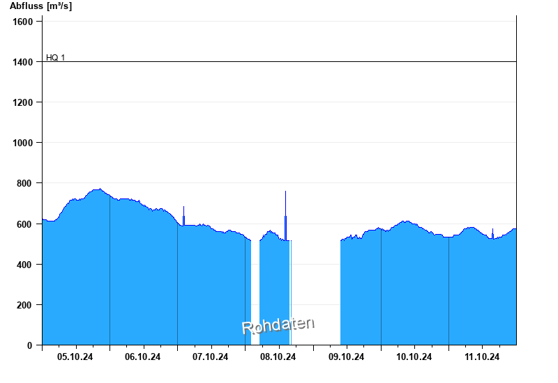 Ausgabe von Abflusswerten wegen Stauregelung erst ab W = 327 cm