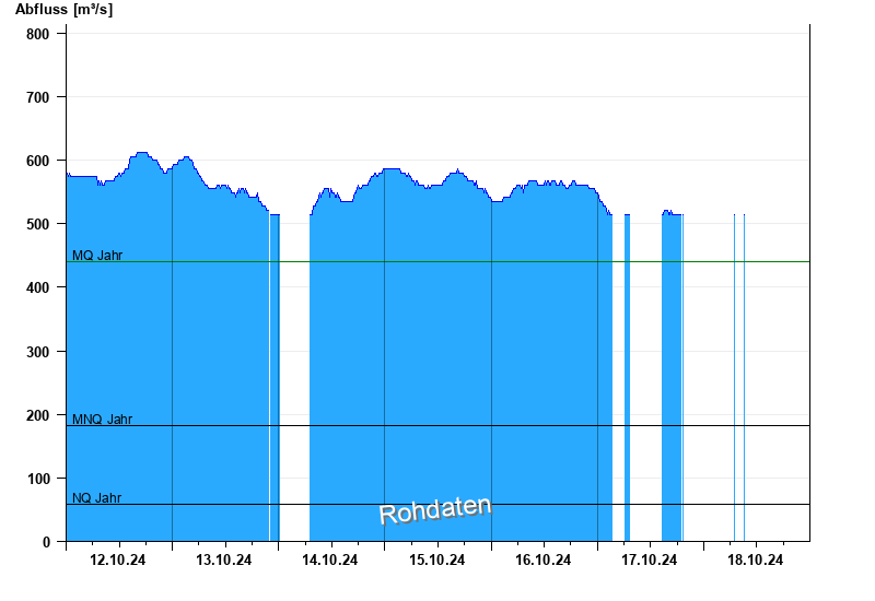 Ausgabe von Abflusswerten wegen Stauregelung erst ab W = 327 cm