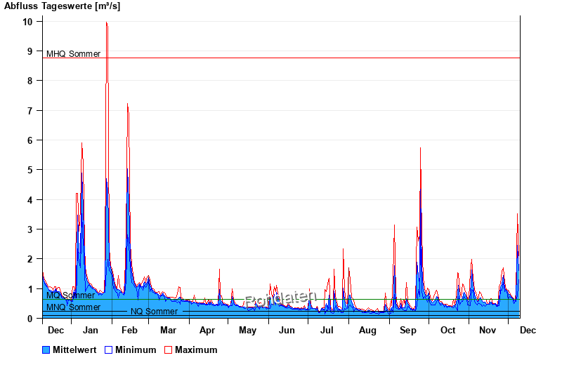 - Mittlerer Niedrigwasserabfluss MNQ 0,233 m³/s